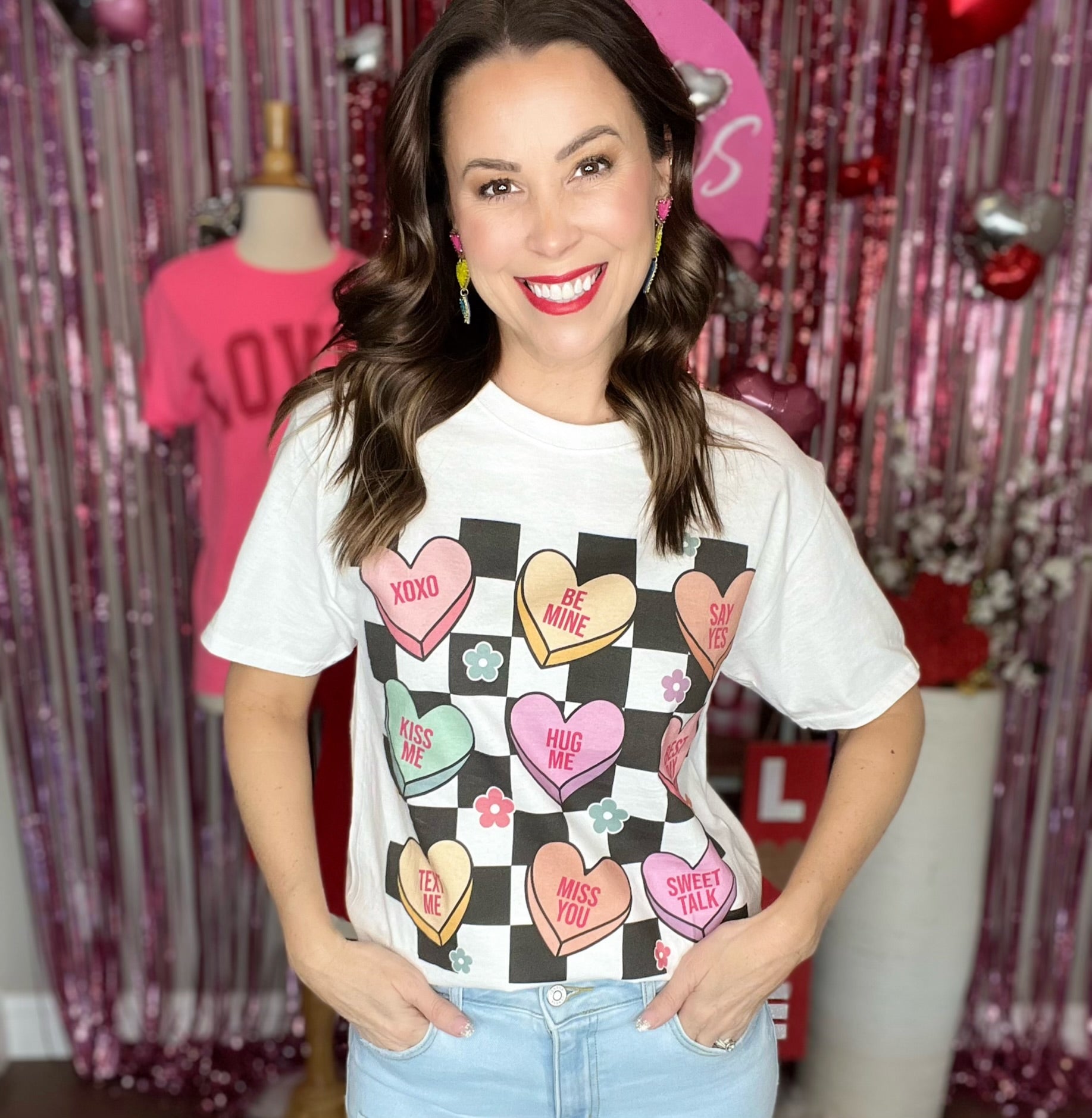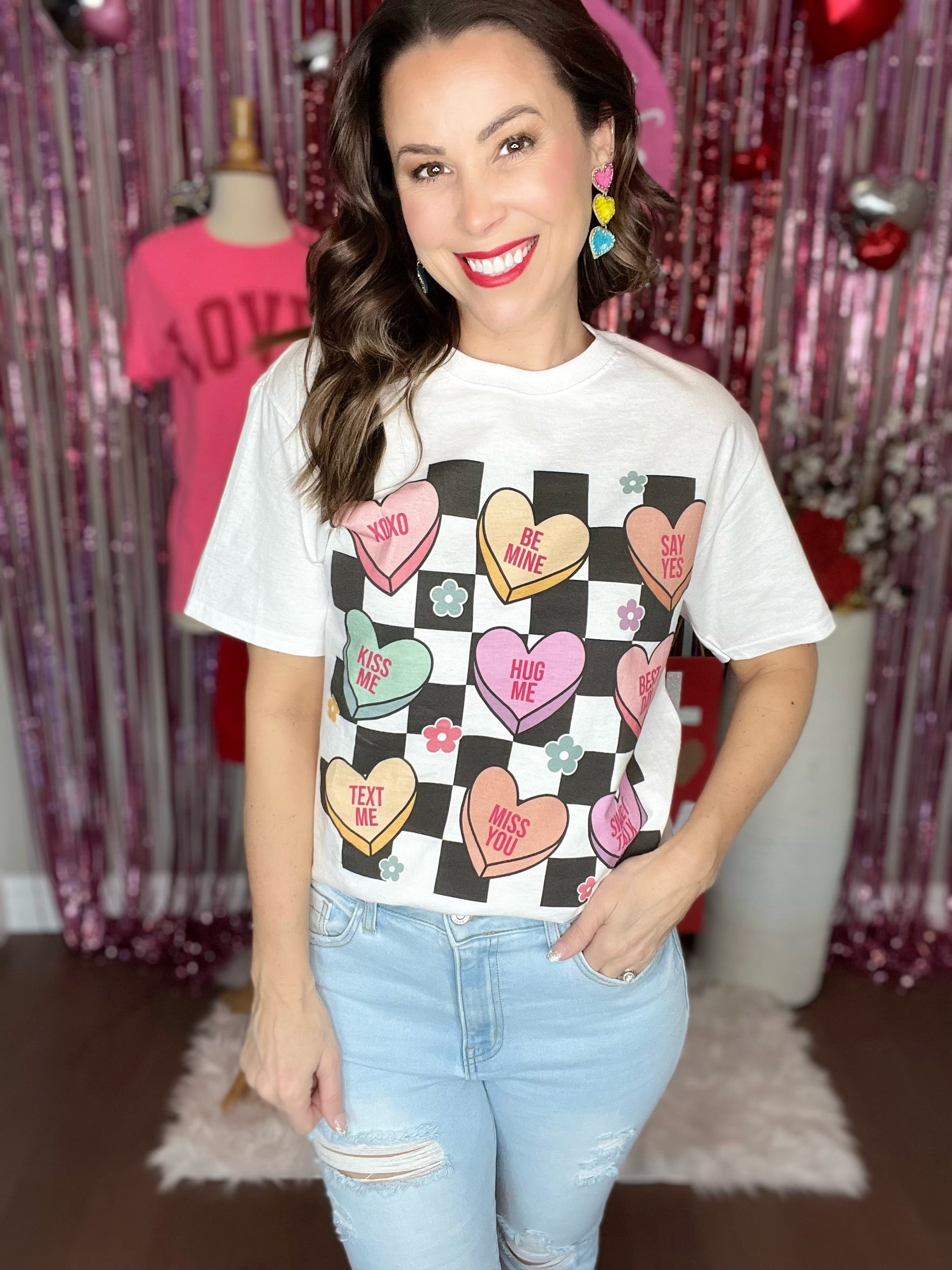 Checkerboard Conversation Hearts Graphic T-Shirt