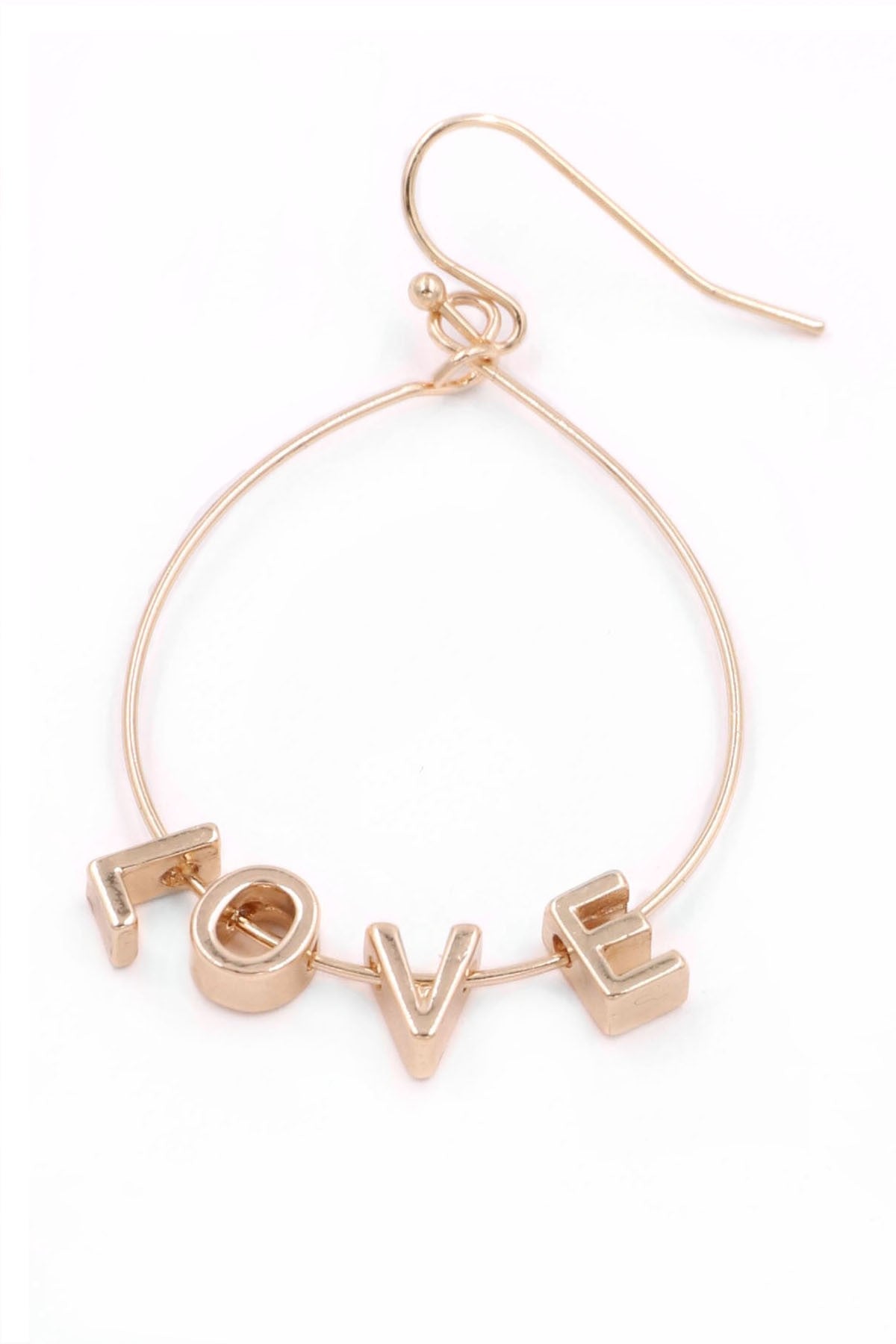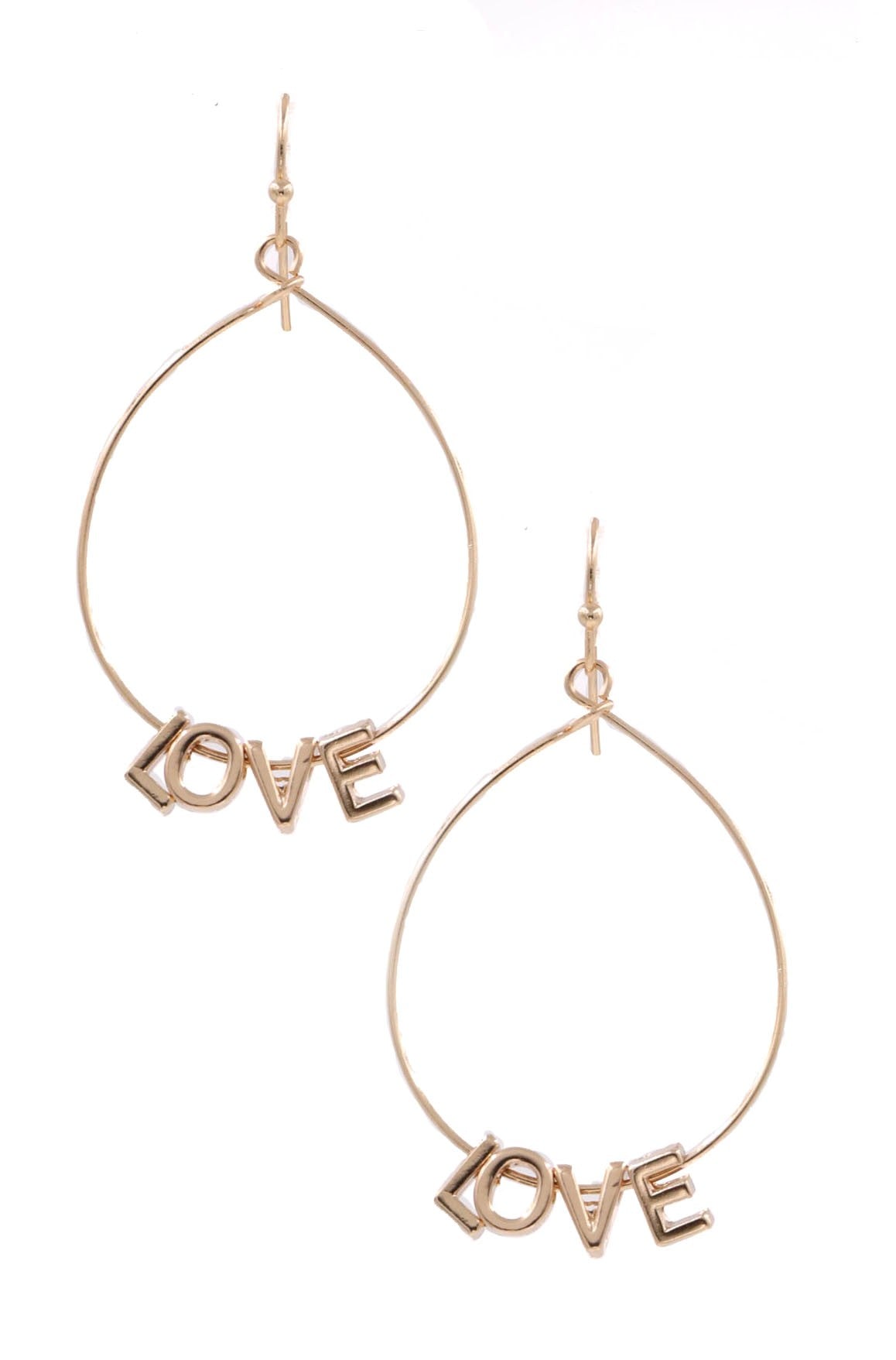 Metal 'LOVE' teardrop wire drop earrings Earring drop length: 2" Fish hook ear wire