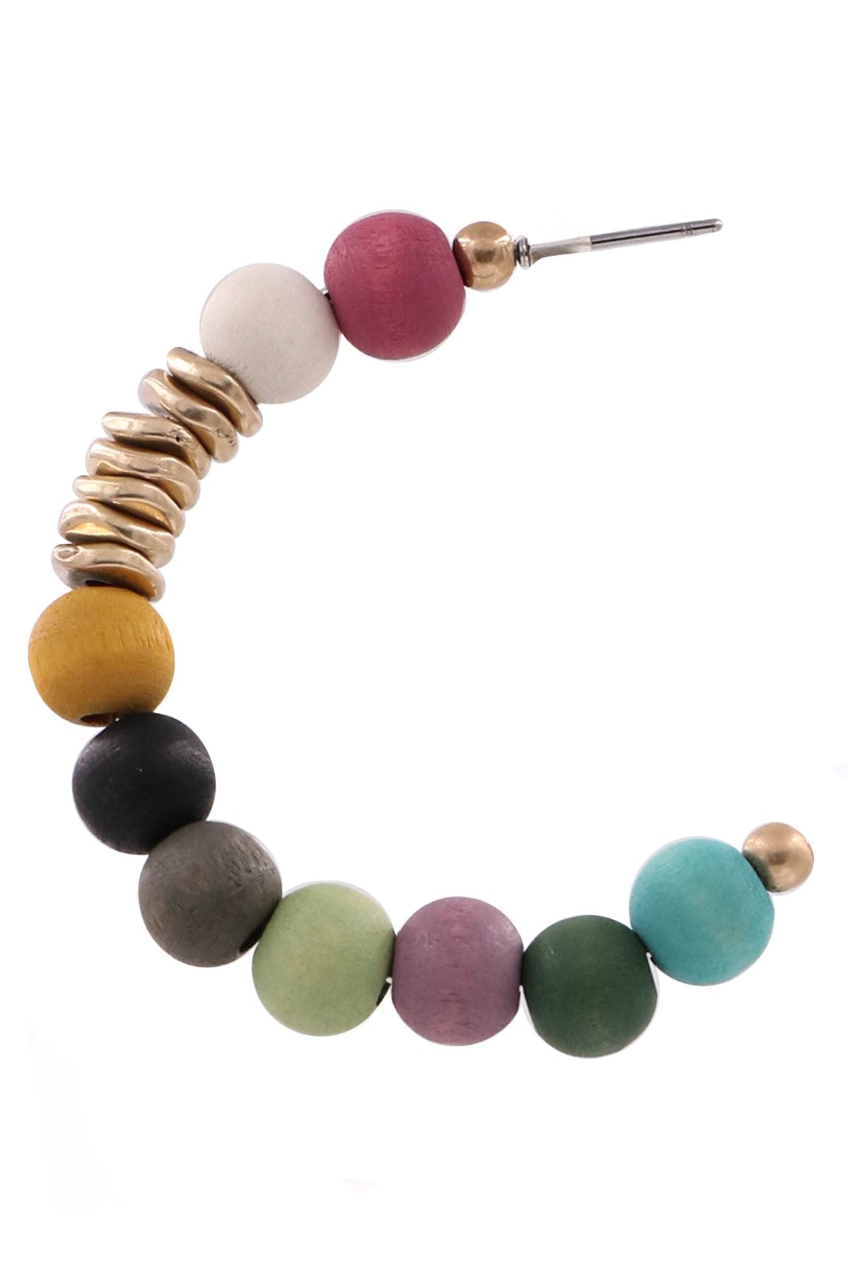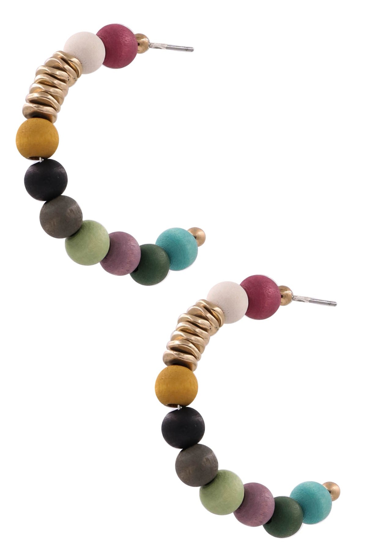 Multi Wood Bead Open Hoop Earrings