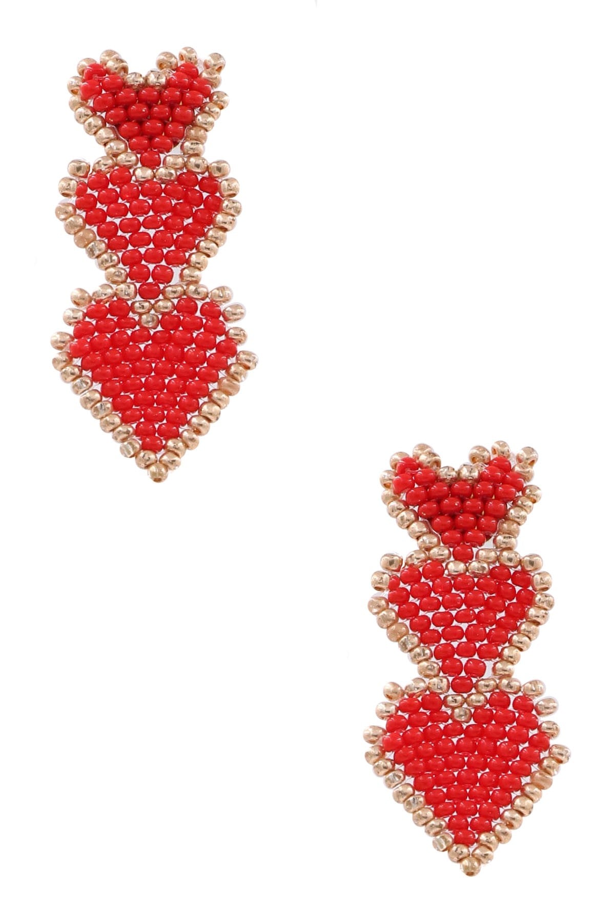 Seed bead stacked heart earrings Earring length: 1 1/2" Post Back