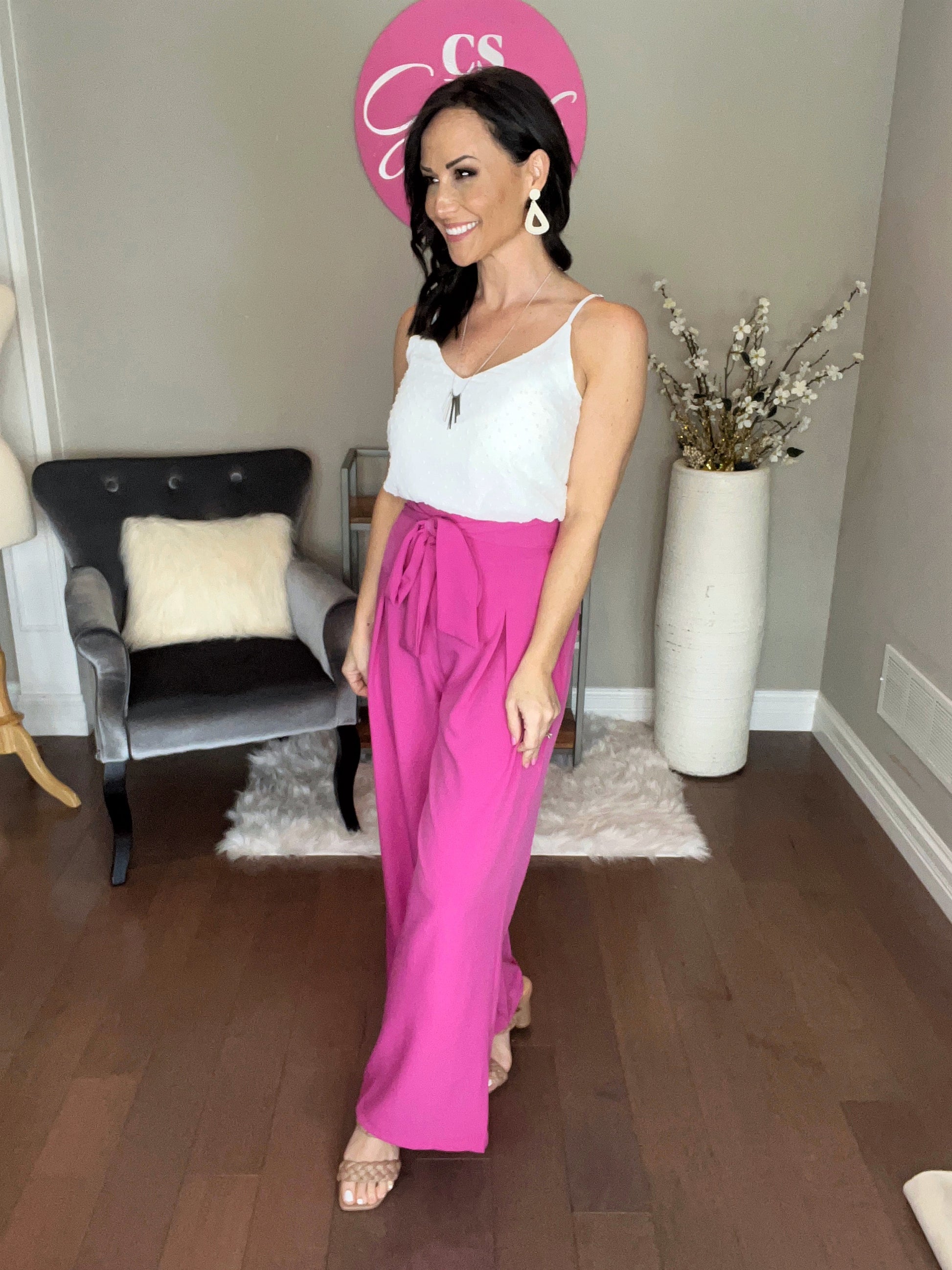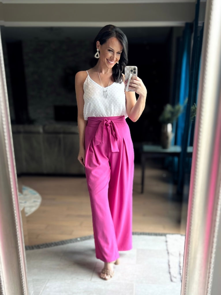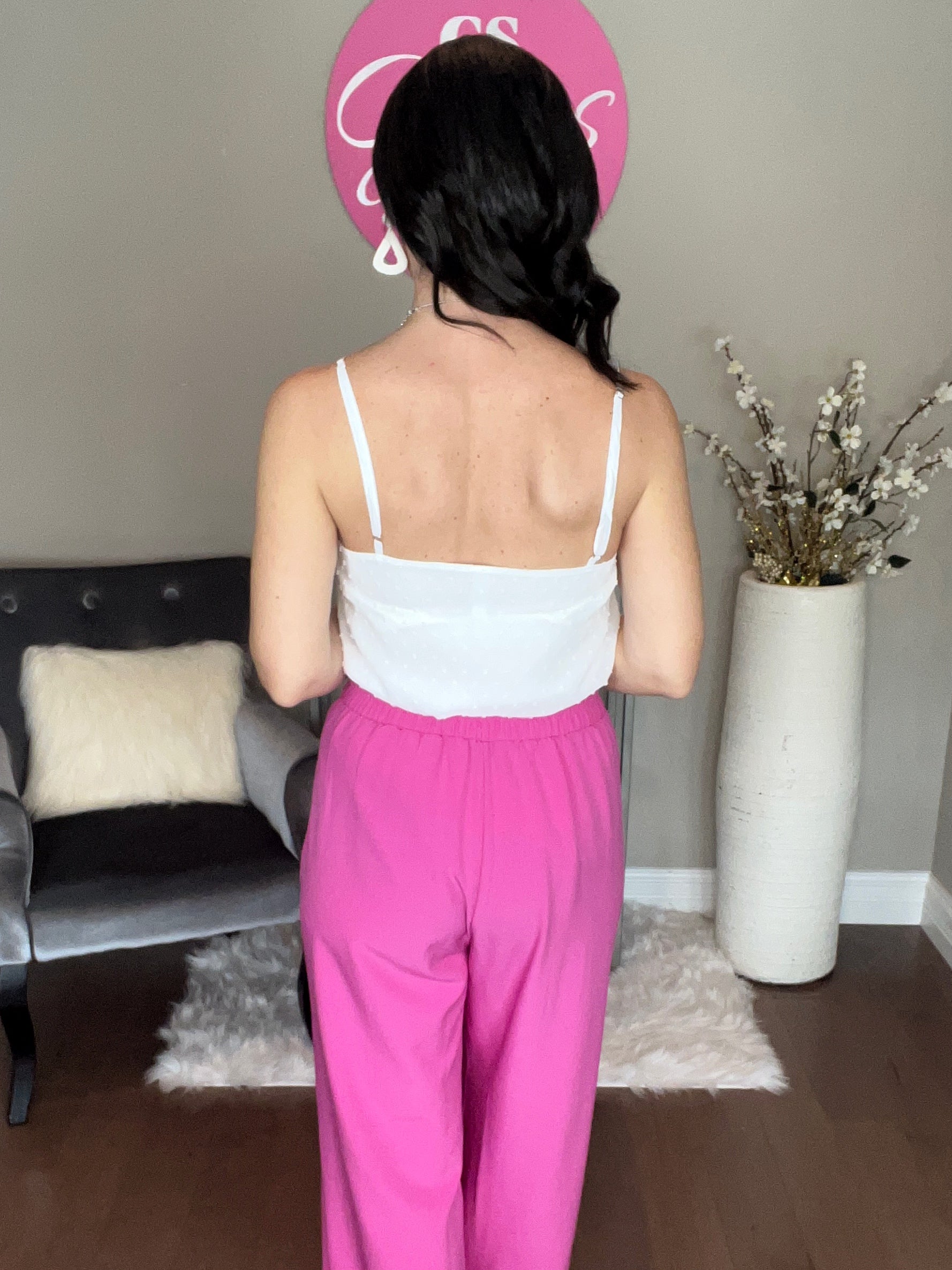SWISS DOT ADJUSTABLE STRAP V-NECK CAMI TOP - LINED TOTAL BODY LENGTH: 20.5", BUST: 35" approx. - MEASURED FROM SMALL
