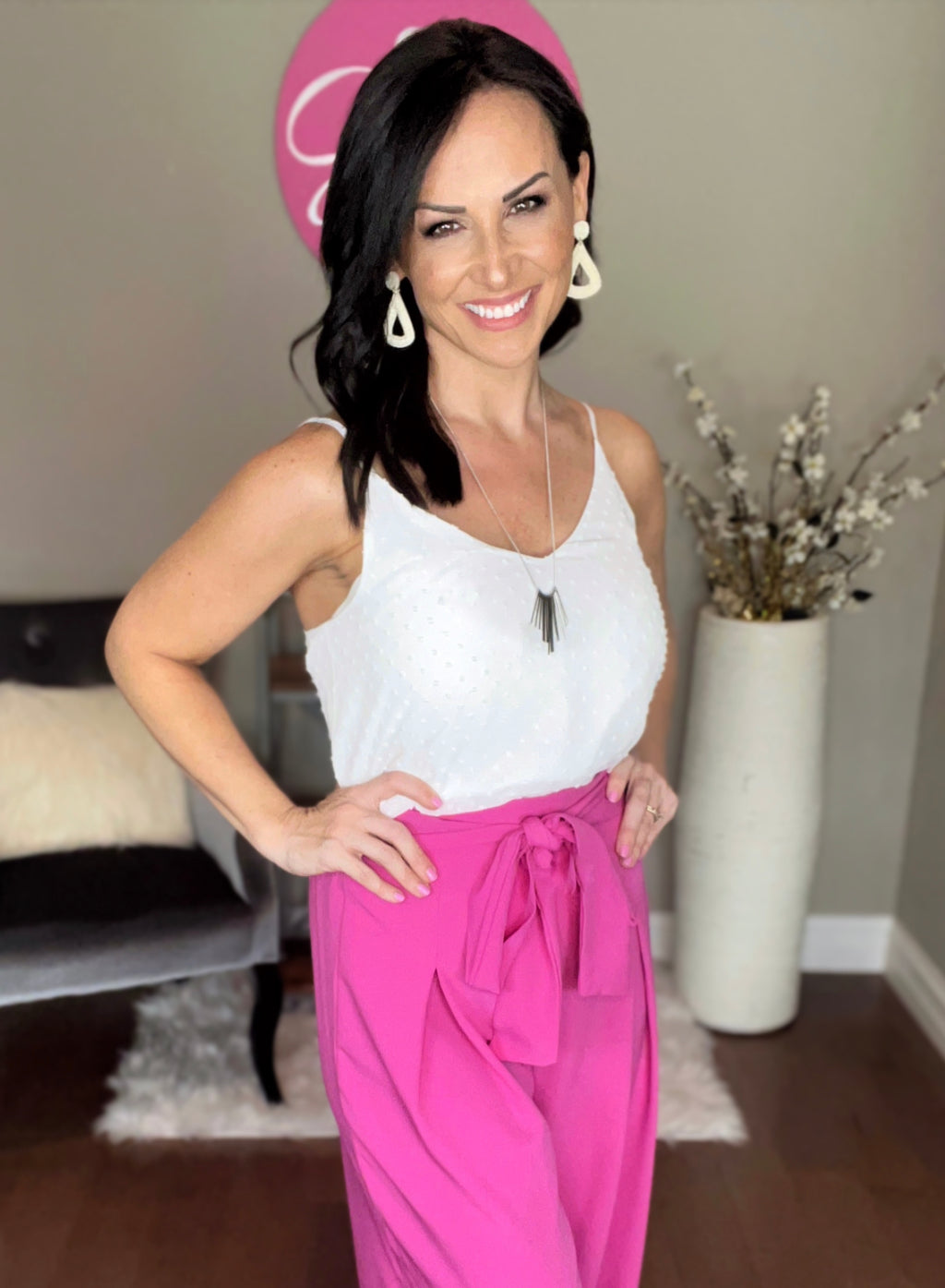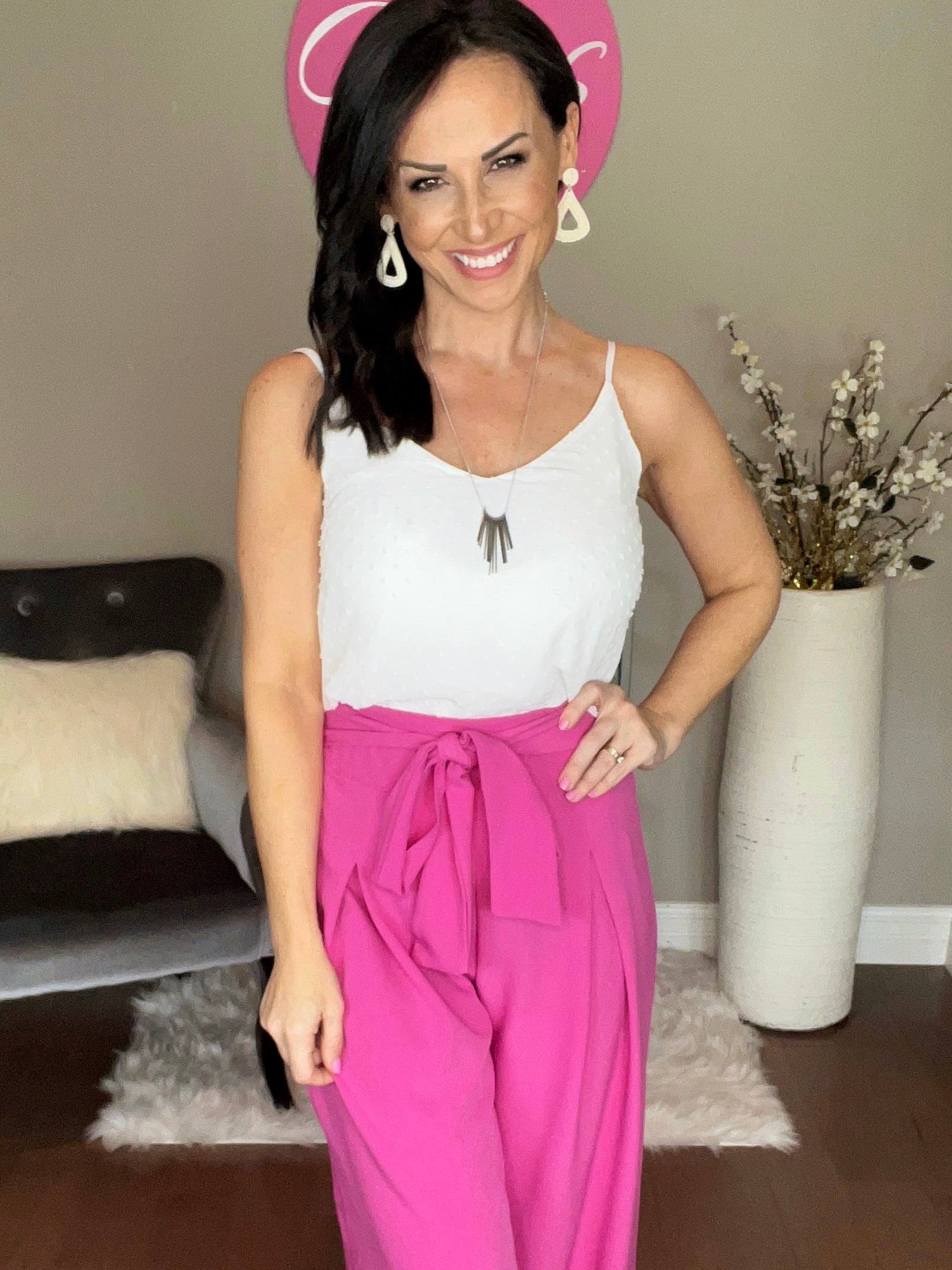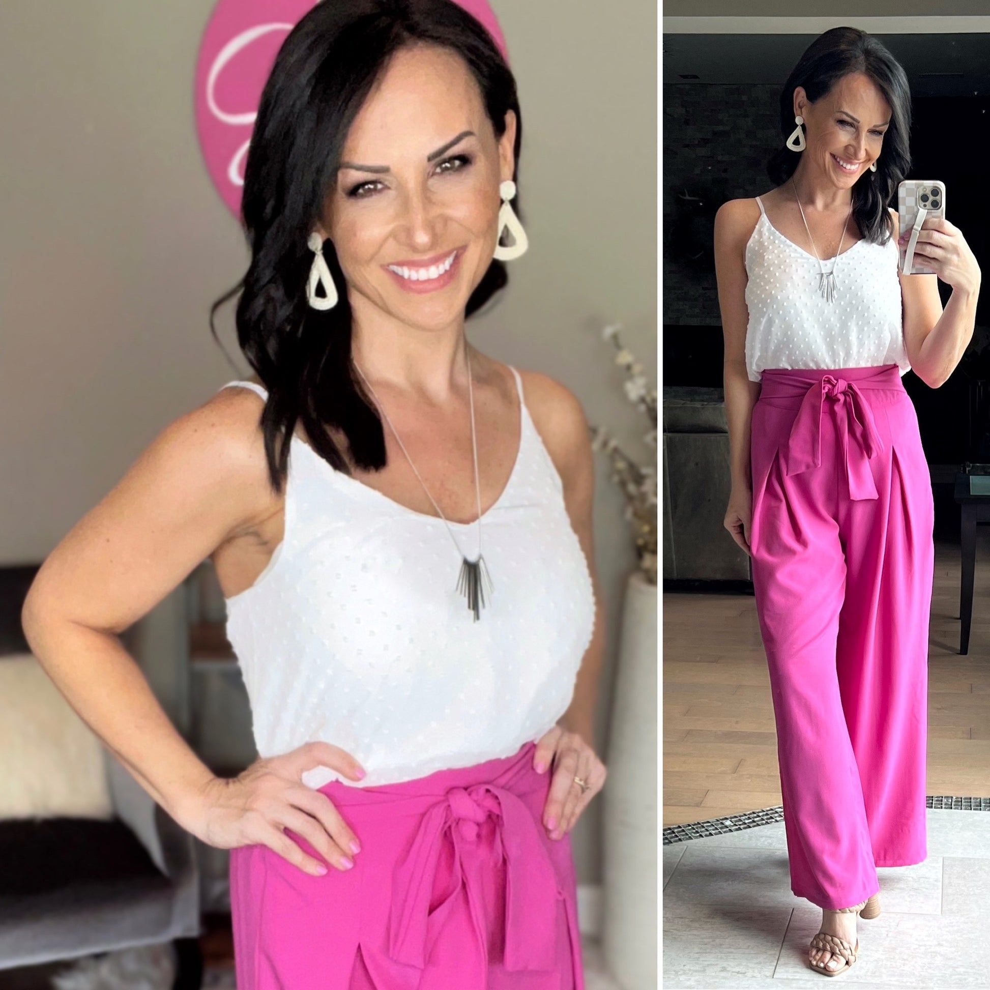 WHITE SWISS DOT ADJUSTABLE STRAP V-NECK CAMI TOP
